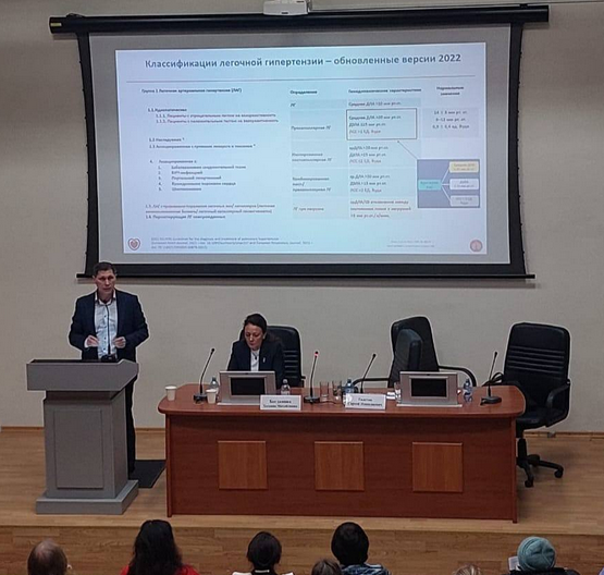 Эксперты Областного кардиодиспансера выступили с тремя докладами. Т.М.Богднова продемонстрировала эволюцию подходов к лечению легочной гипертензии от фундаментальных исследований до практического применения таргетной терапии.